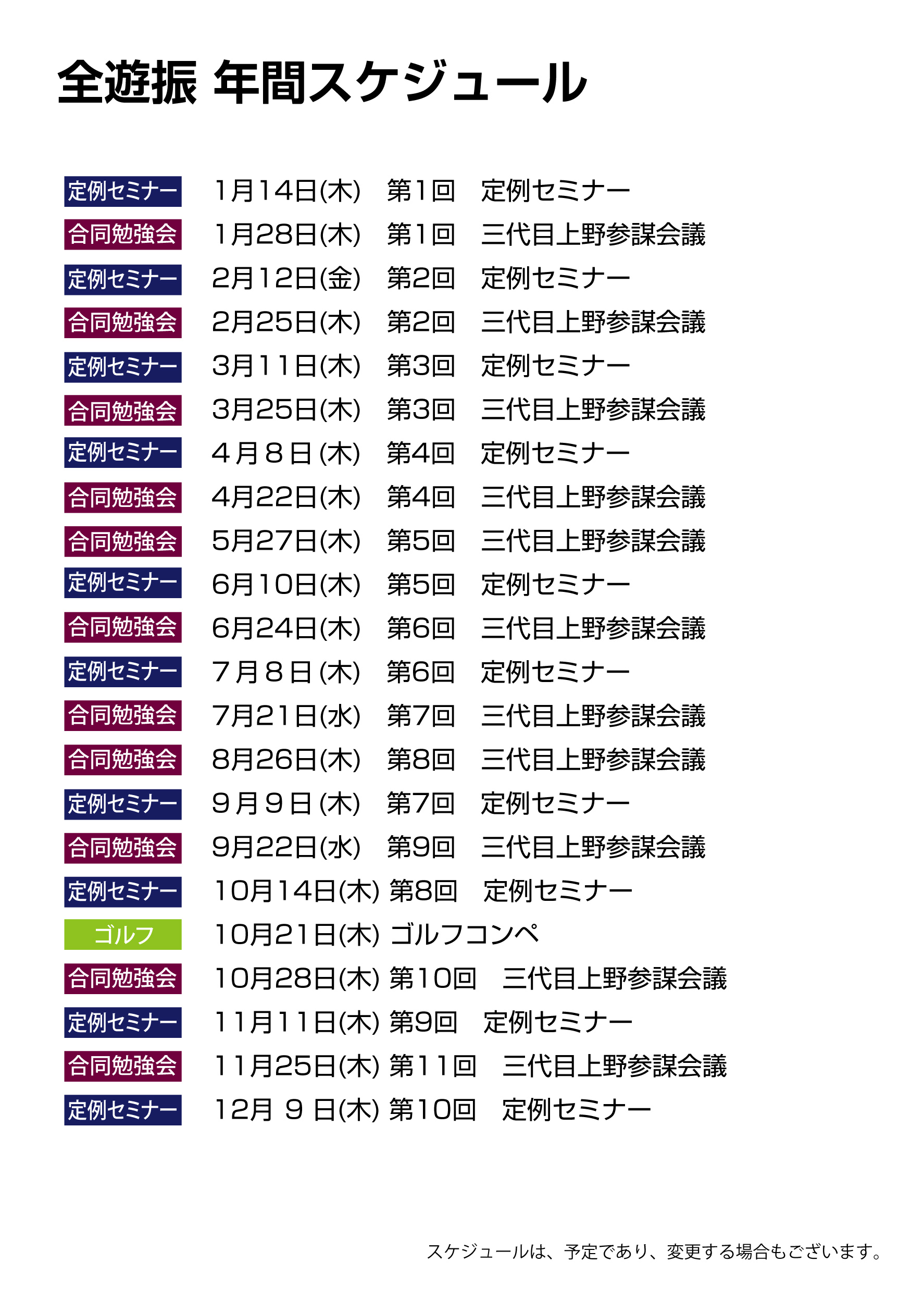 全遊振 2021年 年間スケジュール