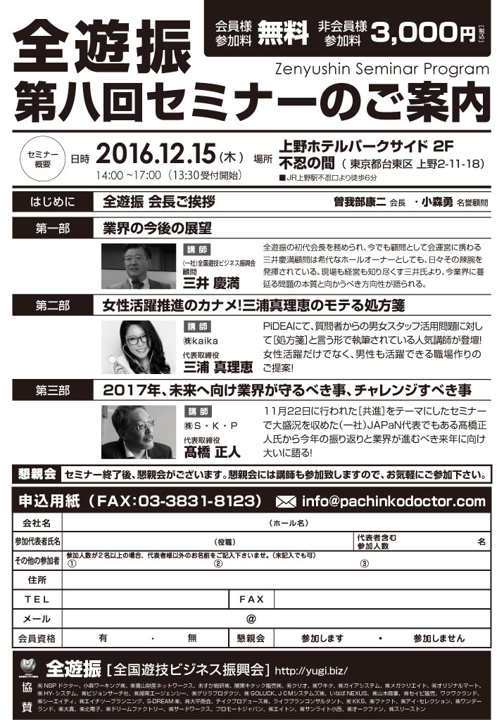 全遊振第8回セミナーのご案内14:00 - 17:00 ※13:...