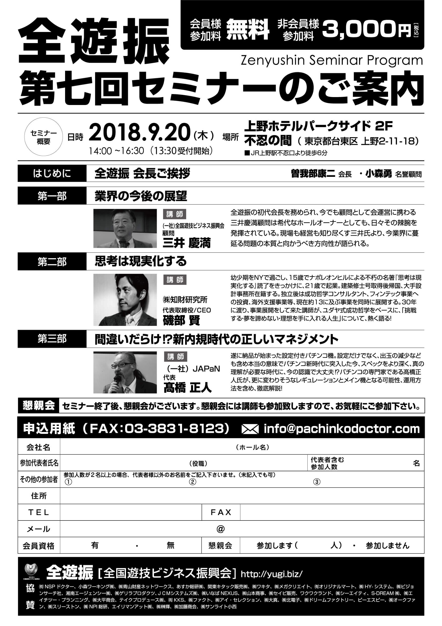 全遊振 9月例会・セミナー 2018年9月20日(木)開催