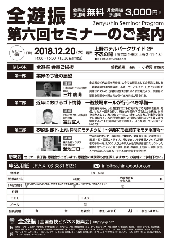 全遊振 9月例会・セミナー 2018年12月20日(木)開催